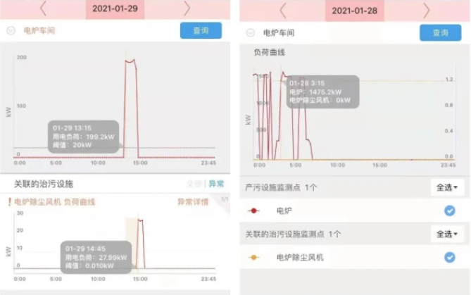 2021年1月29日,蘇州市用電工況監(jiān)控系統(tǒng)發(fā)出預(yù)警,顯示某有限公司廢氣治理設(shè)施用電量數(shù)天內(nèi)連續(xù)低值,疑似未與生產(chǎn)設(shè)施同步運(yùn)行。根據(jù)預(yù)警線索,昆山市生態(tài)環(huán)境局執(zhí)法人員第一時(shí)間對(duì)該公司進(jìn)行了現(xiàn)場(chǎng)檢查。通過(guò)調(diào)取該企業(yè)1月27日-28日用電數(shù)據(jù),查實(shí)1月27日夜間至1月28日凌晨,該企業(yè)熔鐵電爐用電數(shù)據(jù)在1500kW以上,但配套的布袋除塵風(fēng)機(jī)沒(méi)有用電數(shù)據(jù)。昆山市生態(tài)環(huán)境局對(duì)該公司未采取集中收集處理等措施控制、減少粉塵和氣態(tài)污染物排放的環(huán)境違法行為予以立案處罰。