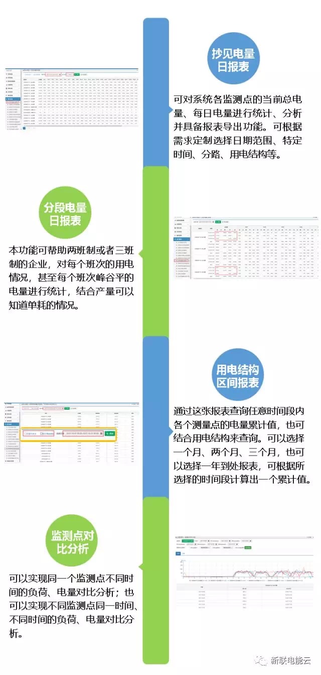 使用新聯(lián)電能云配用電監(jiān)測與管理系統(tǒng),即可免費(fèi)使用統(tǒng)計(jì)報(bào)表功能,除此之外,配用電監(jiān)測與管理系統(tǒng)還可為企業(yè)提供多項(xiàng)用電管理功能,幫助企業(yè)實(shí)現(xiàn)精細(xì)化、自動(dòng)化管理。在保證安全用電的基礎(chǔ)上企業(yè)可根據(jù)經(jīng)濟(jì)運(yùn)行、能效管理的要求設(shè)置管理目標(biāo),通過系統(tǒng)實(shí)現(xiàn)企業(yè)用電管理的高效運(yùn)行。