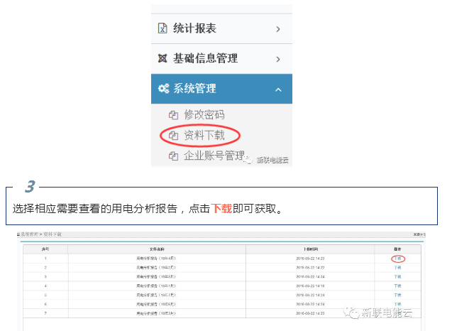 為方便企業(yè)與用戶查看用電分析報(bào)告,配用電監(jiān)測與管理系統(tǒng)中“資料下載”功能全新上線啦!
